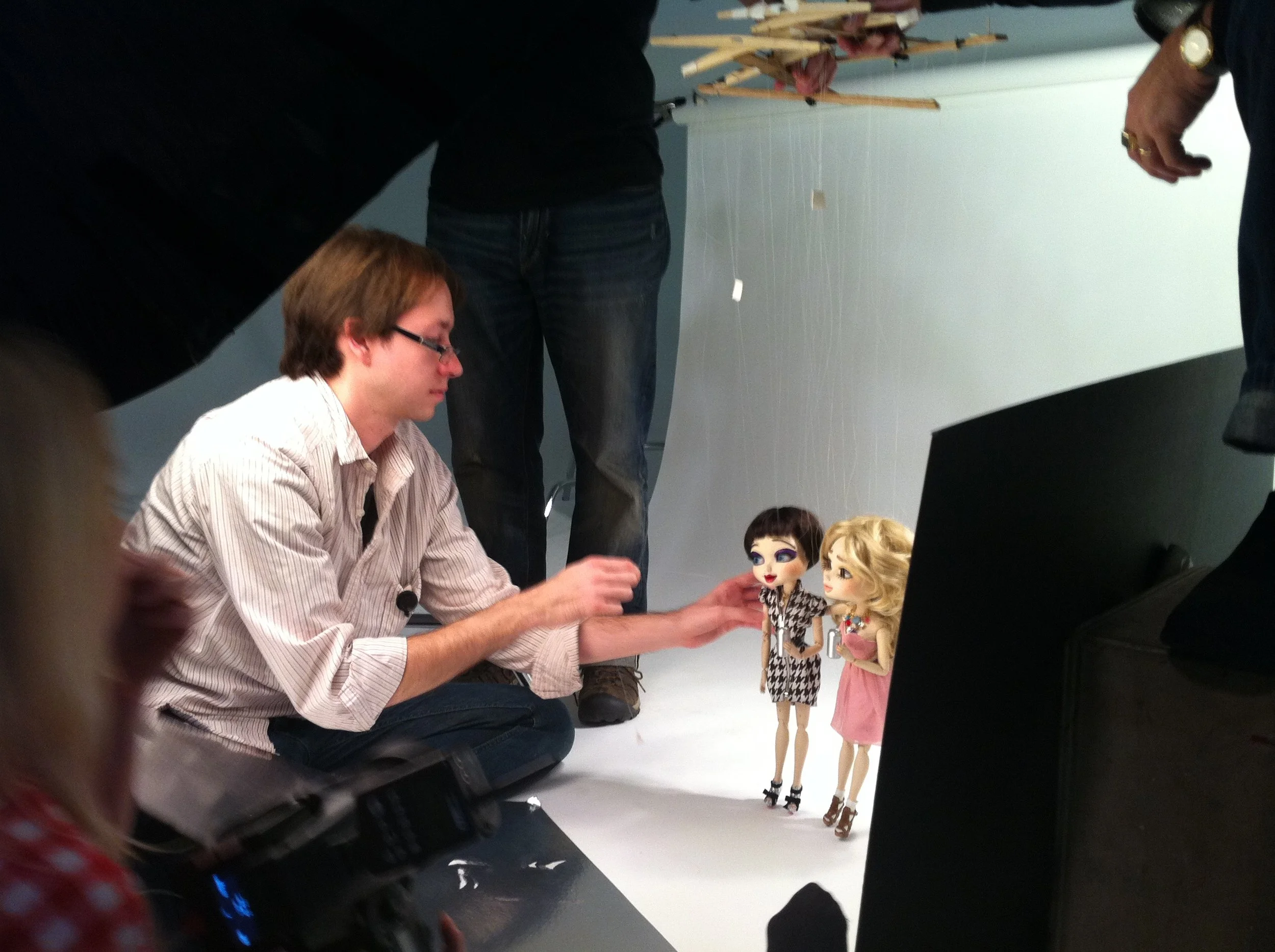 Puppet Artist Michael Bush prepping Eleanor for the shot during the Diet Coke: Love it Lite production.
