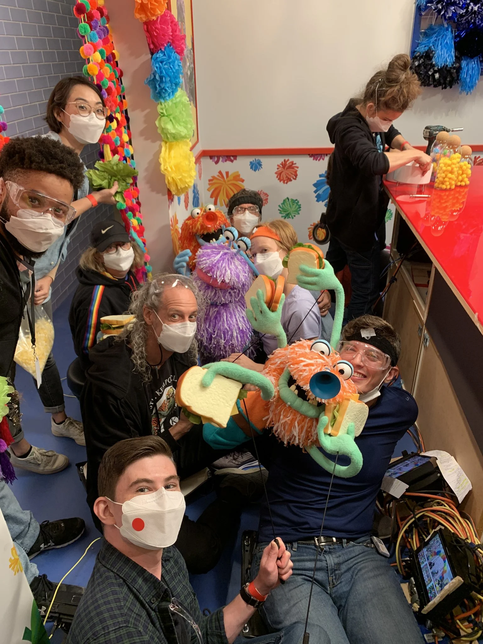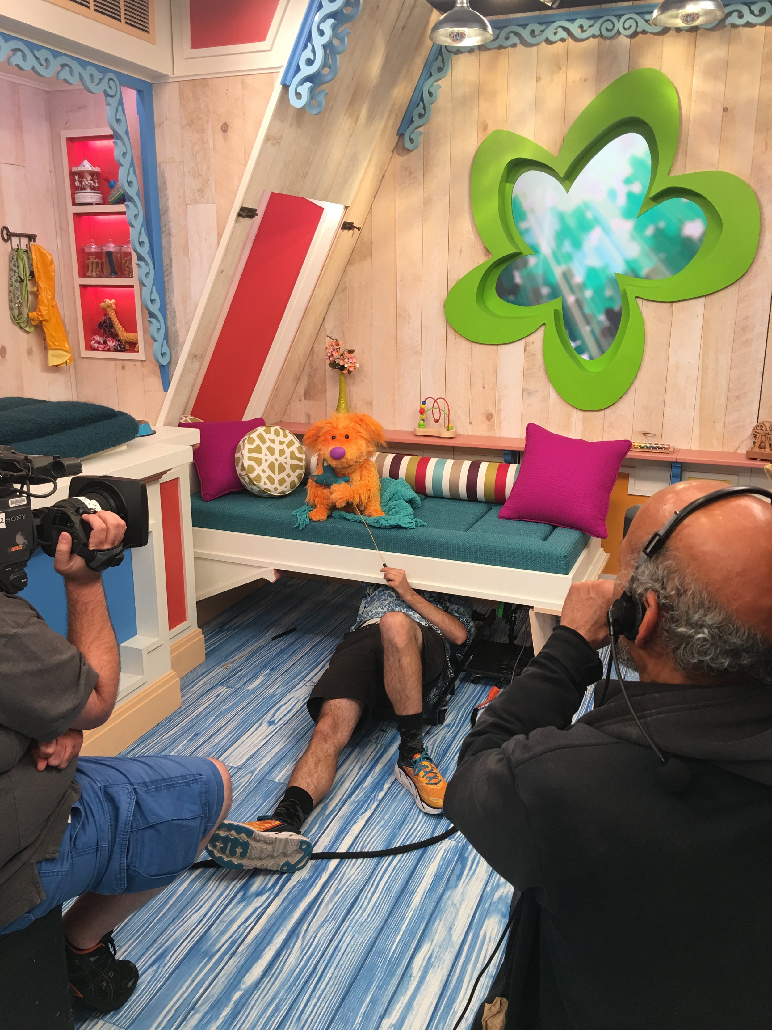 For those new to puppetry, the role of puppet wrangler can seem luxurious, almost silly. I mean, can’t the performers handle their own puppets? You might think so until you see them get into position for a shoot. It’s common for puppeteers to assume all sorts of awkward positions in order to hide themselves from camera. If you’re, say, shoving your arm up through a hole in a couch where the puppet is supposed to be sitting, well, it’s not possible to do that without someone there to help. And that is just the very tip of the iceberg. Who decided where that hole needed to be cut? How big? At what angle? And who even thought of coordinating with the production crew that it even needed to happen in the first place? The wrangler. And this is a very simple example. Everything a puppet appears to do--from picking up a pencil to parcour through a gulag-- is a carefully considered illusion created by the collaboration of the director, the cameraman, the set and props departments, and the performer--all facilitated and orchestrated by the puppet wrangler. Wranglers are essential members of any production incorporating puppets. They aren’t just there to “handle” puppets—they’re expert puppeteers who ensure that every aspect of the puppet process, from script to screen, goes off without a hitch.